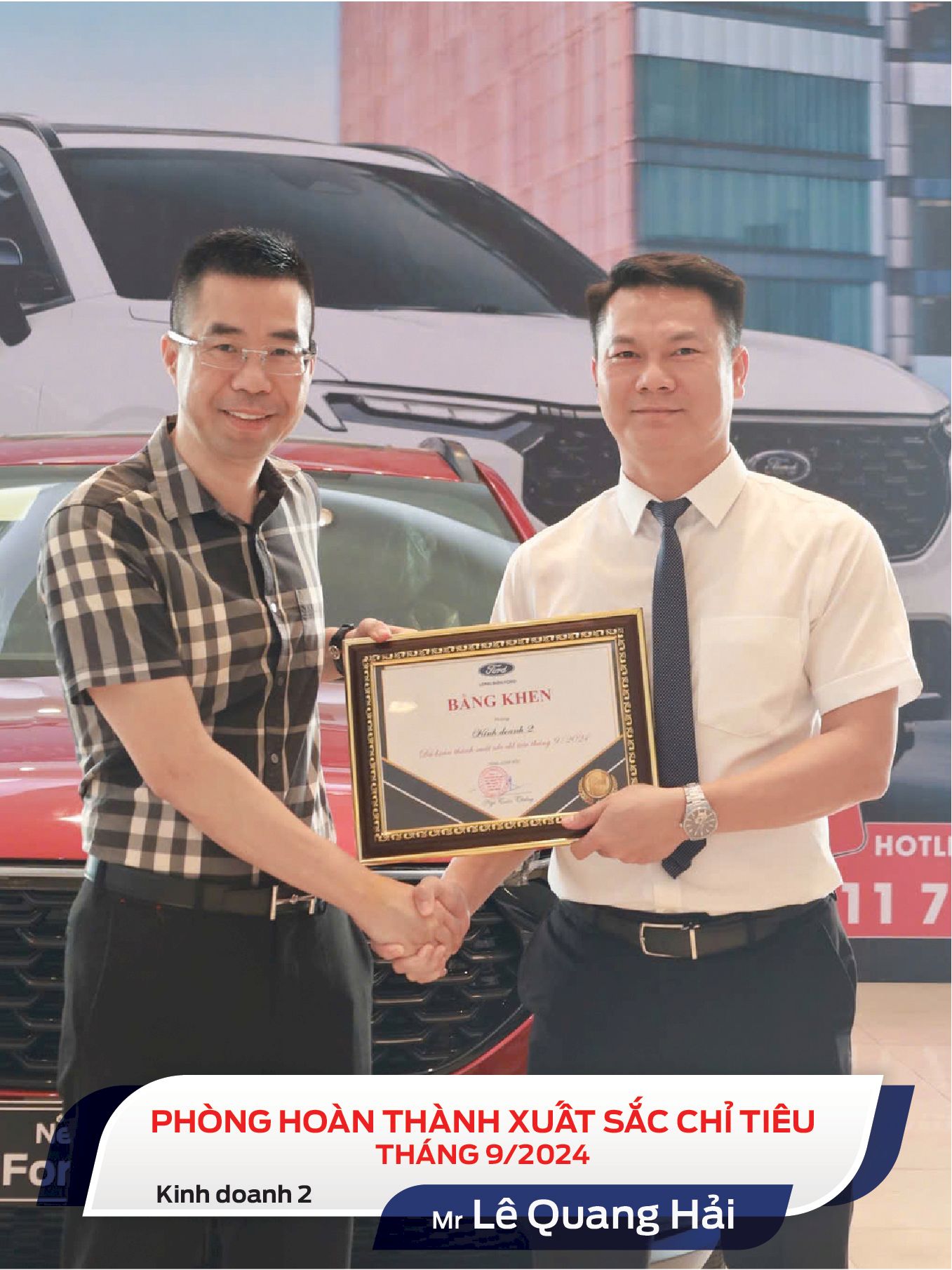 Long Biên Ford xin gửi lời cảm ơn và chúc mừng đến các bạn, cũng như tất cả mọi người đã có những đóng góp cho công ty trong thời gian vừa qua. Hi vọng các bạn luôn giữ vững tinh thần phấn đấu và thái độ làm việc hiệu quả, tiếp tục gặt hái nhiều thành công hơn nữa.